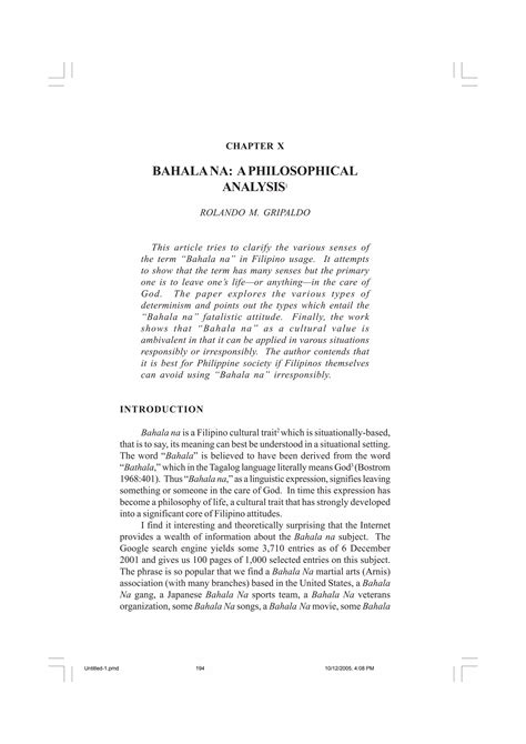 Ngunit, anong kahulugan at epekto ng paggamit ng Bahala Na sa buhay ng mga Pilipino? Ano ang dahilan kung bakit ito ay patuloy na nakapagtatakang konsepto? Sa kabila ng modernisasyon at pagbabago, bakit marami pa rin ang naniniwala at umaasa sa Bahala Na? Sa artikulong ito, tatalakayin natin ang mga aspeto ng Bahala Na at ang mga posibleng paliwanag sa likod ng kahalagahan nito sa kultura at paniniwala ng mga Pilipino. Tutuklasin natin kung paano ito nagbigay ng lakas at inspirasyon sa mga taong naniniwala rito, pati na rin ang mga potensyal na banta at limitasyon na maaaring idulot nito.